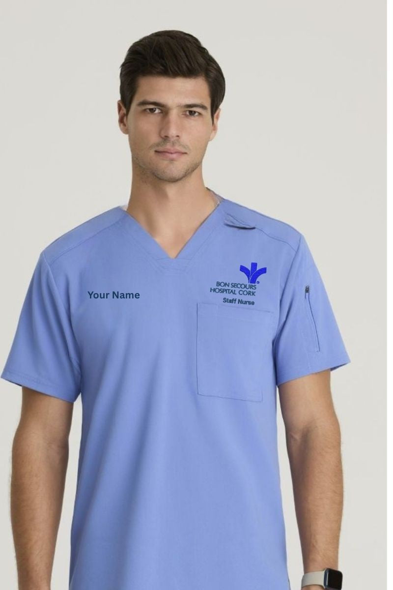 Staff Nurse Murphy V-Neck Scrub Top with Bon Secours Cork logo and your name